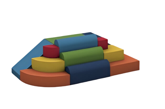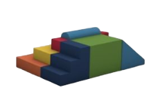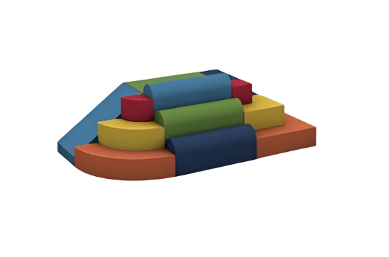 12 piezas; pirámide cuadrada, pirámide redonda, escalera 3 pasos, rampa y escalones de escalada.